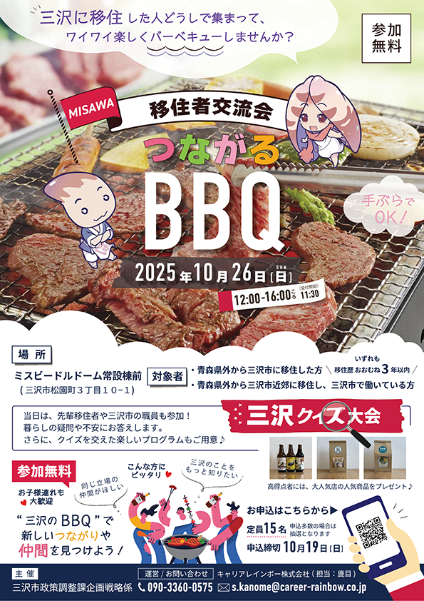 そんなBBQを通じて、三沢に移住された方同士が交流できるイベントを初開催します♪